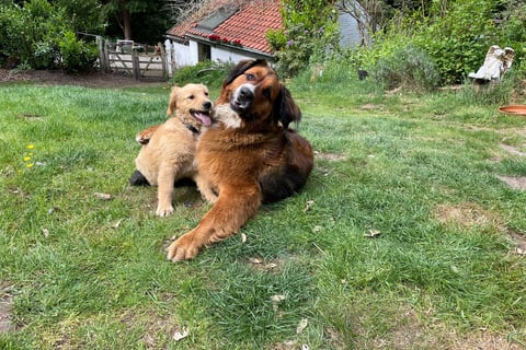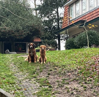 Deze pups zijn een mix van Leonberger en Golden Retriever – groot, vriendelijk en perfect voor gezinnen. Ze zijn opgegroeid in de vrije natuur hier in Zwolle, rondrennend en spelend in de bossen en velden.