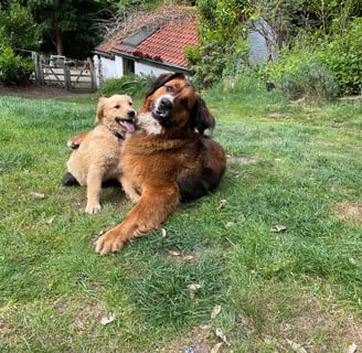 Hoi daar! Kijk, we hadden nooit gedacht dat we een website zouden hebben voor honden, maar hier zijn we dan. Onze trouwe Sammy (moeder) en de Golden Retriever (vader) van onze zoon, Louie, hebben ons verrast met een nestje prachtige GoldenBerger pups. En nu zijn we op zoek naar liefdevolle huizen voor ze.